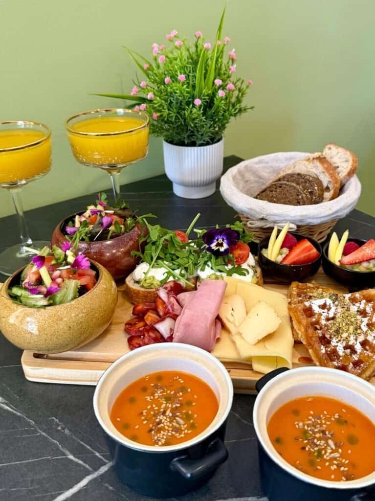 Ride first, then return for a well-deserved brunch or lunch on our sunny terrace. Featuring a gourmet sandwich, cheese, ham, salads, soup and juice of your choice — all local & delicious.